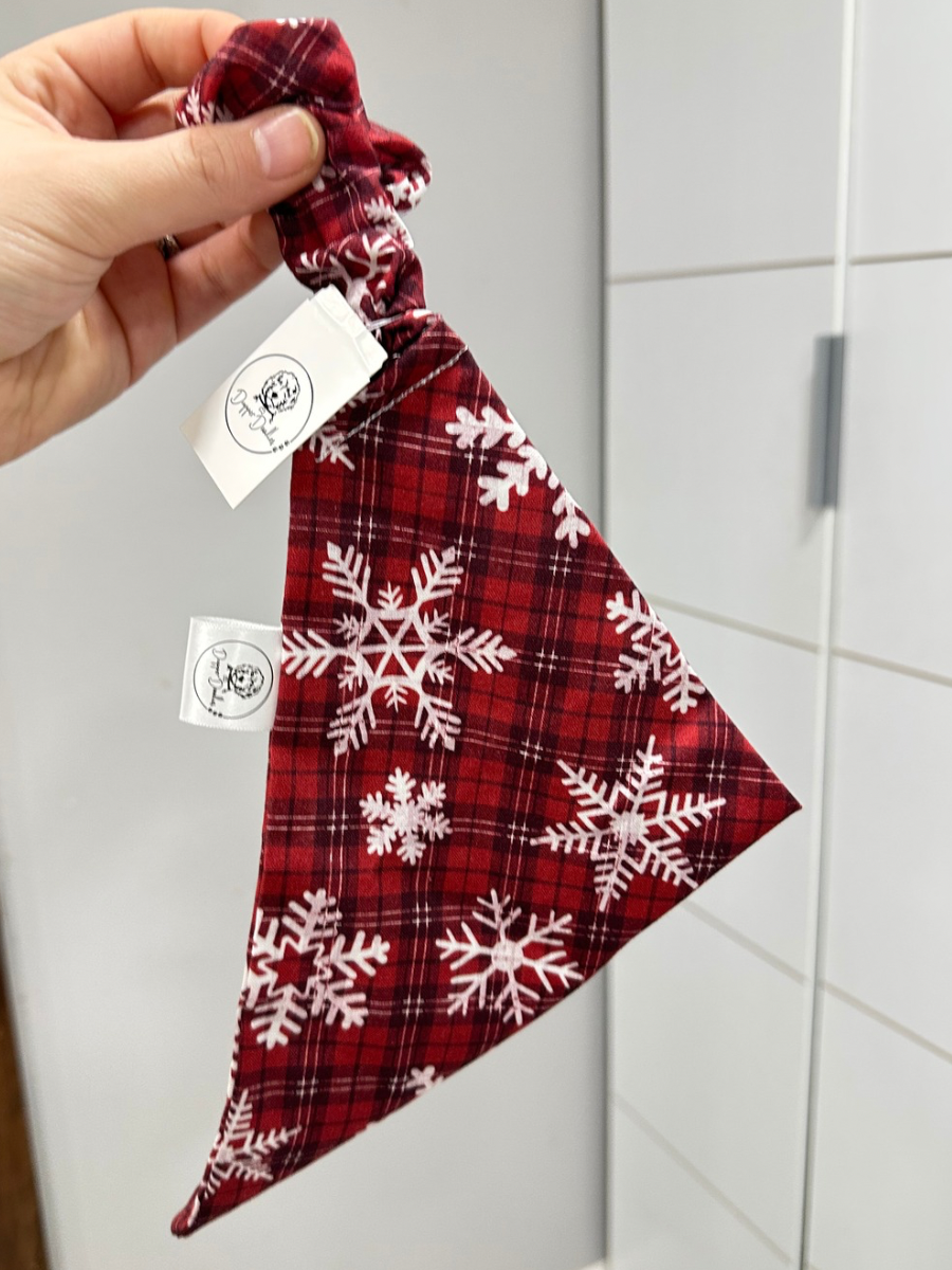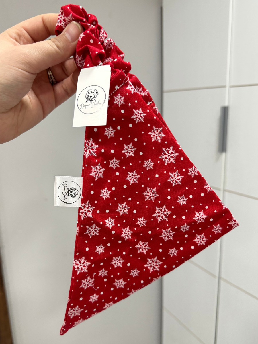 Bright Red Snowflake Scrunchie Bandana
